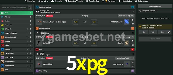 O 5xpg oferece uma grande seleção de opções de apostas em e-sports com probabilidades competitivas